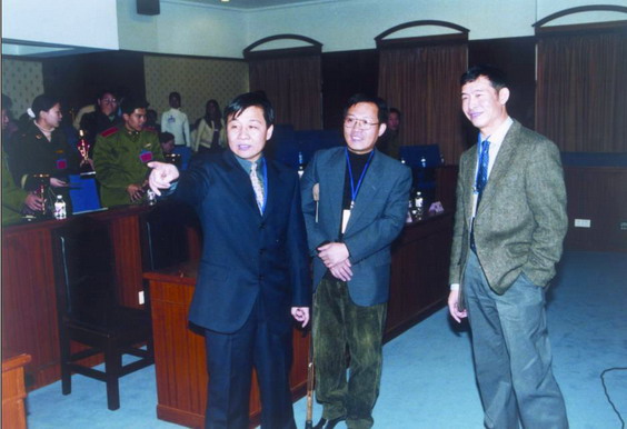 时任中国译协常务副秘书长孙承唐(左一)及中国英汉语比较研究会会长杨自俭(右一)为获二等奖的参赛者颁奖