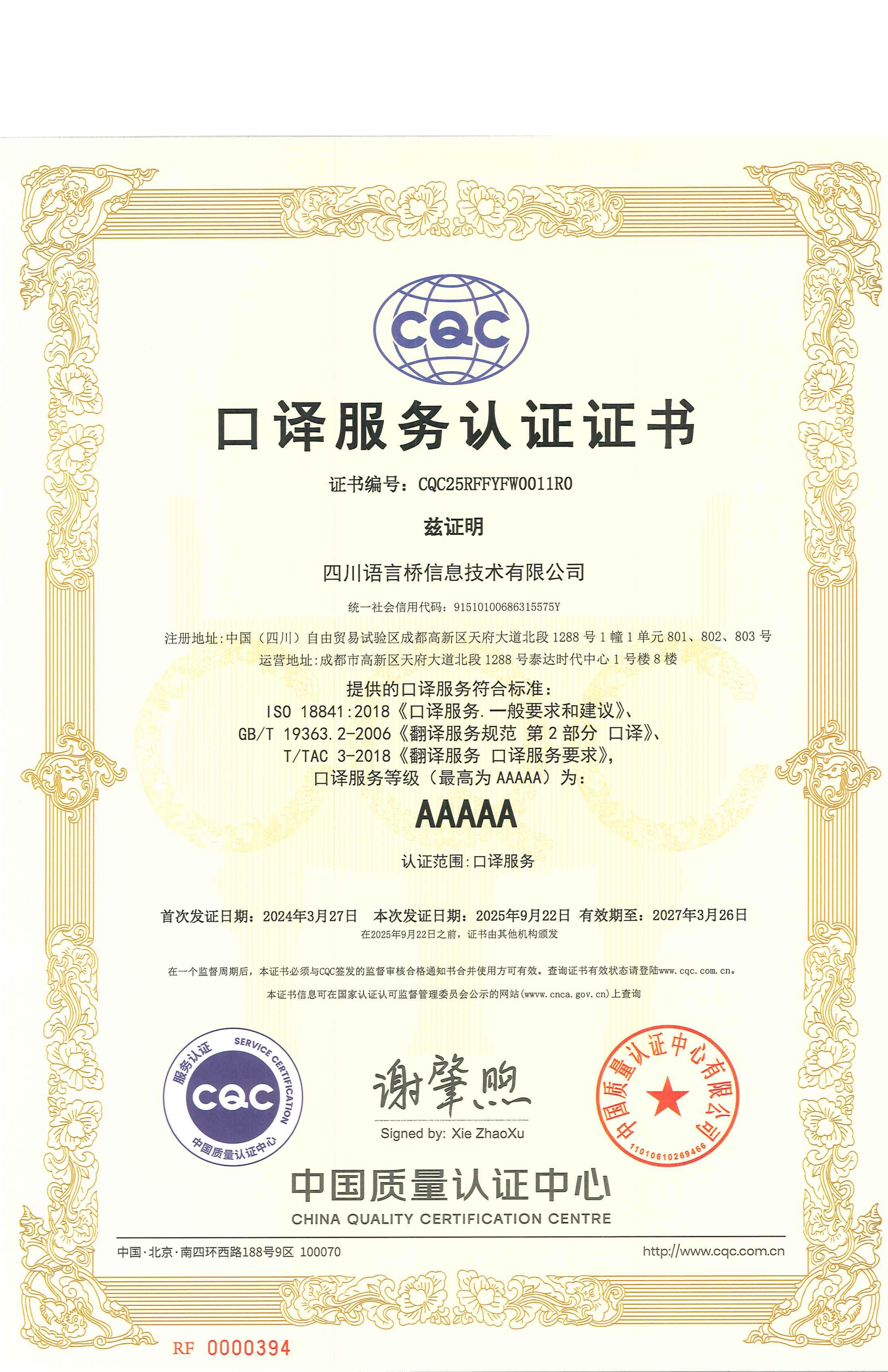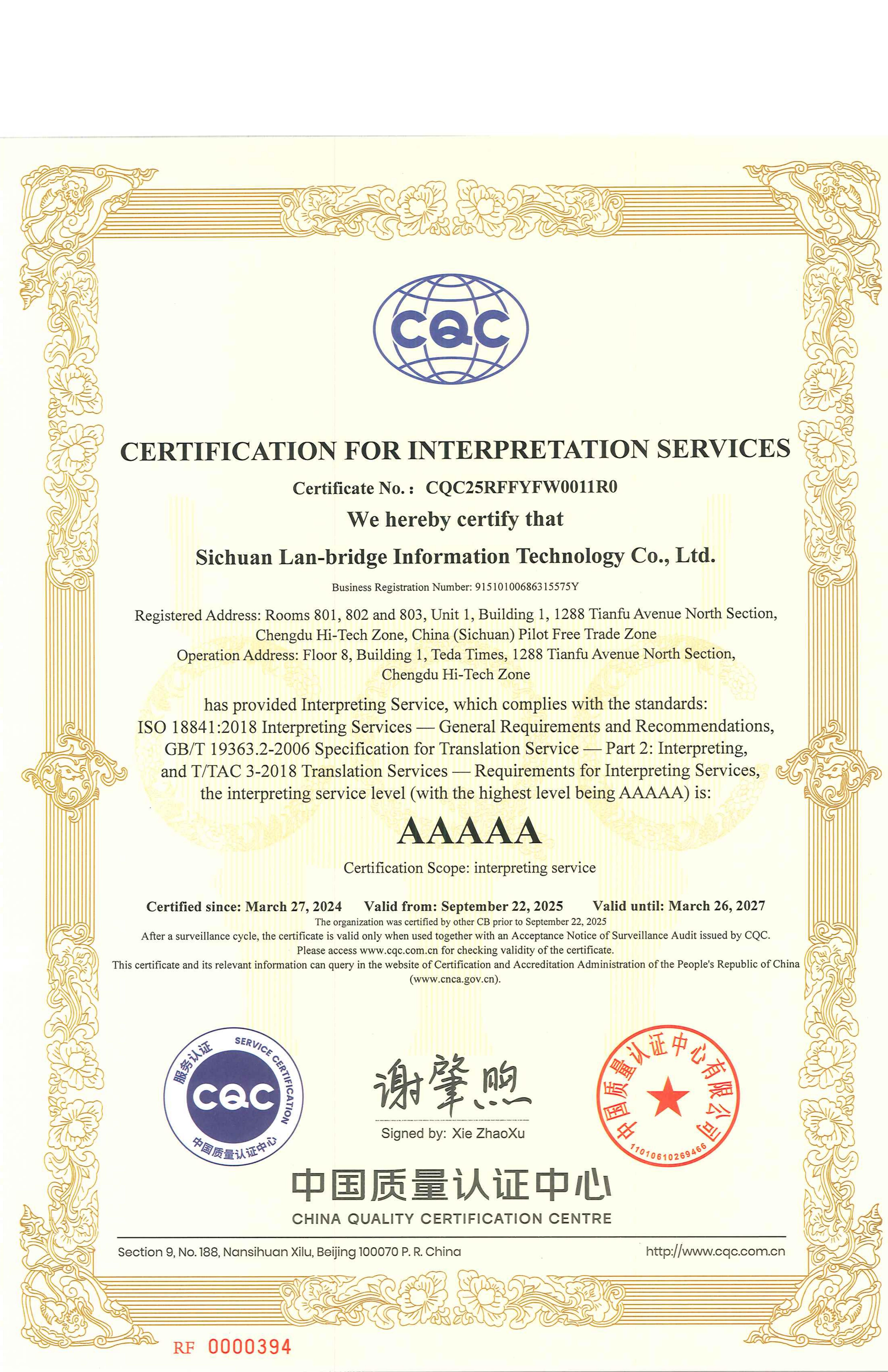 语言桥在19年获得笔译服务认证AAA,20年升级为笔译服务认证AAAA,在整个认证和升级过程中,笔译服务认证要求都在各方各面给予我们指导方向,让我司在笔译服务流程中细节做的更到位。