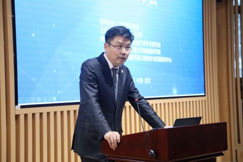 邢玉堂表示,在人工智能时代,口译实践、教育与研究正面临全方位革新。具备高级翻译技能并能与AI协作的专业翻译人才的需求激增,非通用语种及复语口译人才、接力同传人才、远程口译人才的需求也在不断增加,但相关人才的供给侧增长乏力。他强调,口译教育要紧紧锚定国家、社会和市场需求,将数智素养纳入人才培养全过程,推动口译教育教学向个性化、定制化转型。人类译员要牢牢把握主动权,锤炼自身专业能力,强化数智素养和职业道德,做好“最后一关”的把关人,以人文性与专业性守护口译的核心价值。
