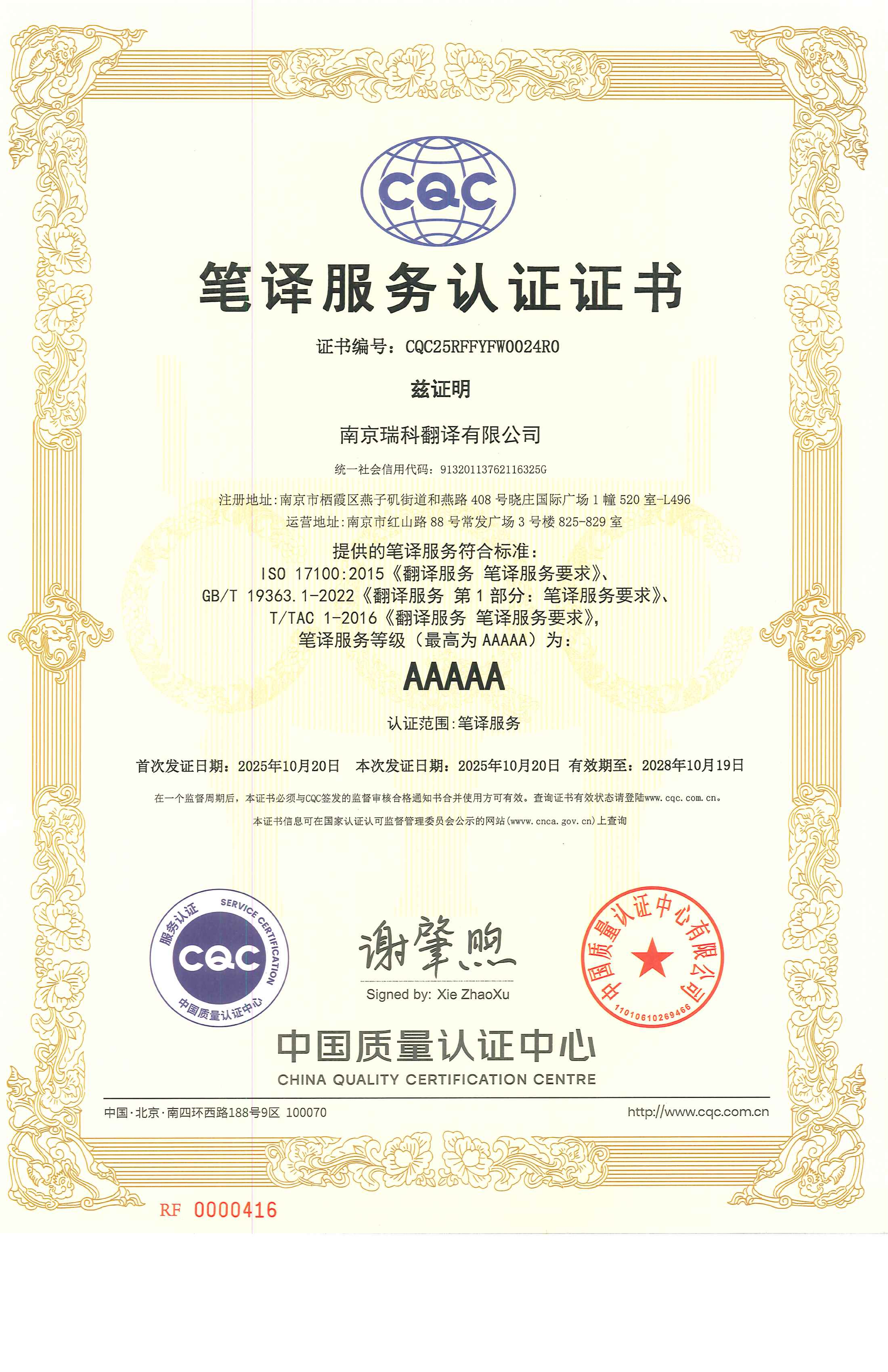 瑞科翻译公司成立于 2004年,由深耕翻译与本地化领域的资深专家创立。作为一家专注于翻译与本地化服务的多语言服务提供商,瑞科凭借卓越的专业实力和严格的质量标准,稳居中国语言服务行业的前列。公司连续多年入选“亚太地区语言服务提供商前 30强”,并在 2023年和 2024年连续两年被北京语言大学国家语言服务出口基地评选为“语言服务推荐企业”,此外,瑞科在“Slator 2025语言服务提供商指数”全球前 300强榜单中排名第 156位,进一步彰显了我们在国际语言服务领域的地位。作为全国翻译专业学位研究生教育实习基地,瑞科与南京邮电大学合作推出的中国大学慕课精品课程《翻译职业教育入门与进阶》广受好评,成为翻译行业教育的优质资源,充分展现了瑞科的行业积淀与专业实力。