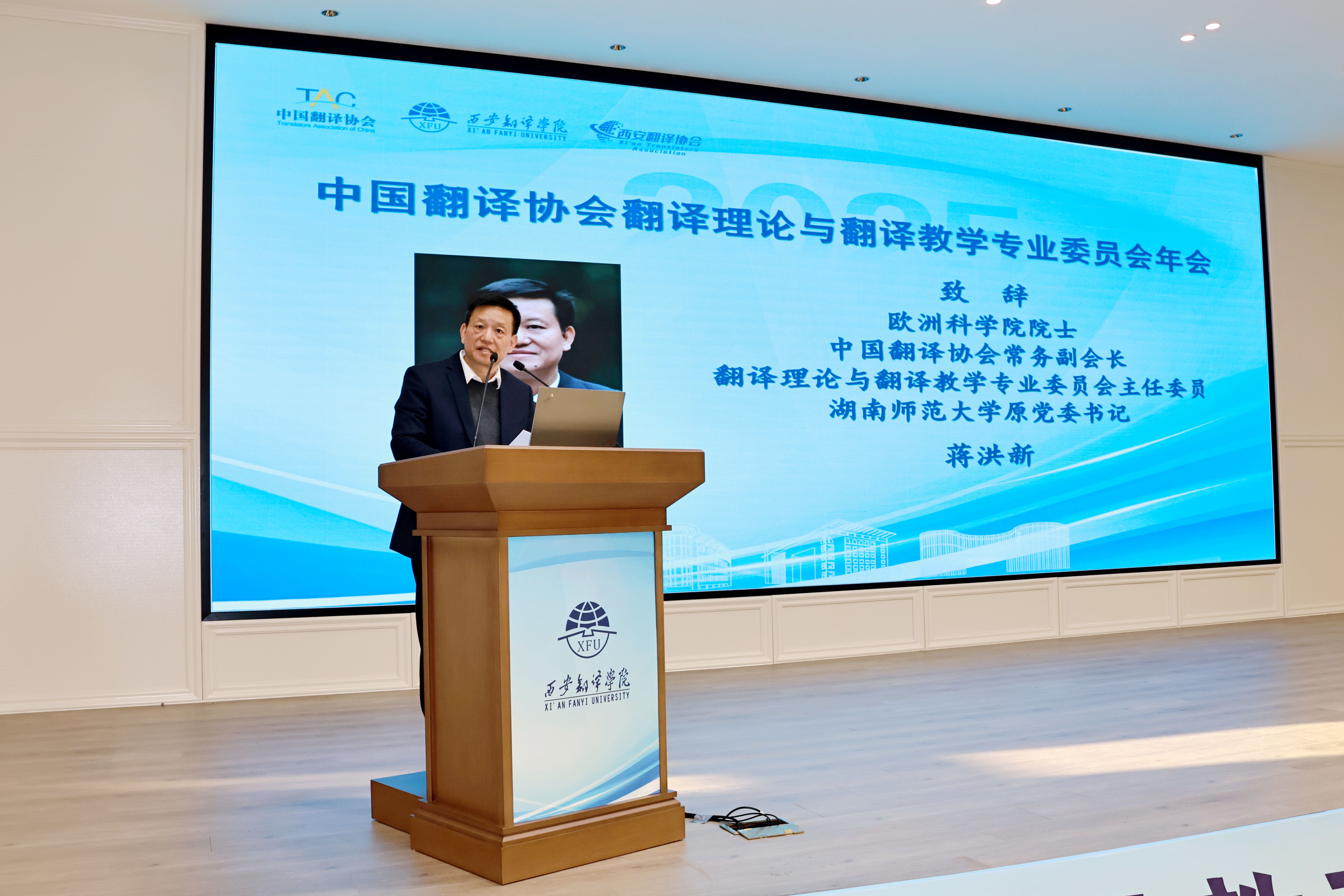 蒋洪新在致辞中表示,翻译是开展国际传播、推进文化自信自强、提升国家文化软实力的关键一环。专委会以“翻译的转型与发展”为主题召开年会,既是对时代命题的深入关切,更是对学科本源的积极回应。他表示,专委会将搭好平台、服务大局,与全国翻译界、教育界同仁一道,深入、持续开展多种类型的翻译理论与翻译教学研讨、交流,助力翻译理论体系构建与创新,引领翻译人才培养的改革实践。