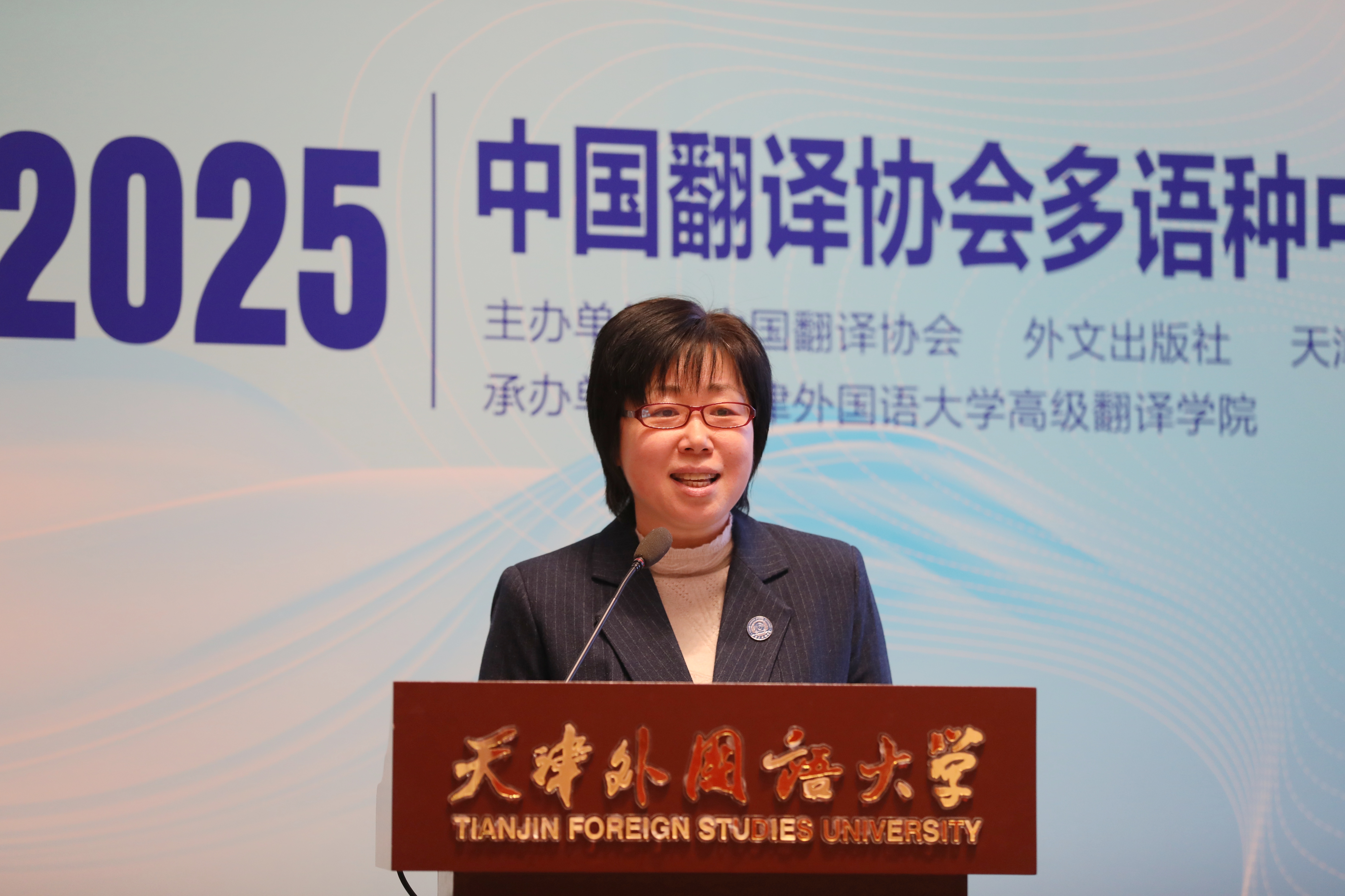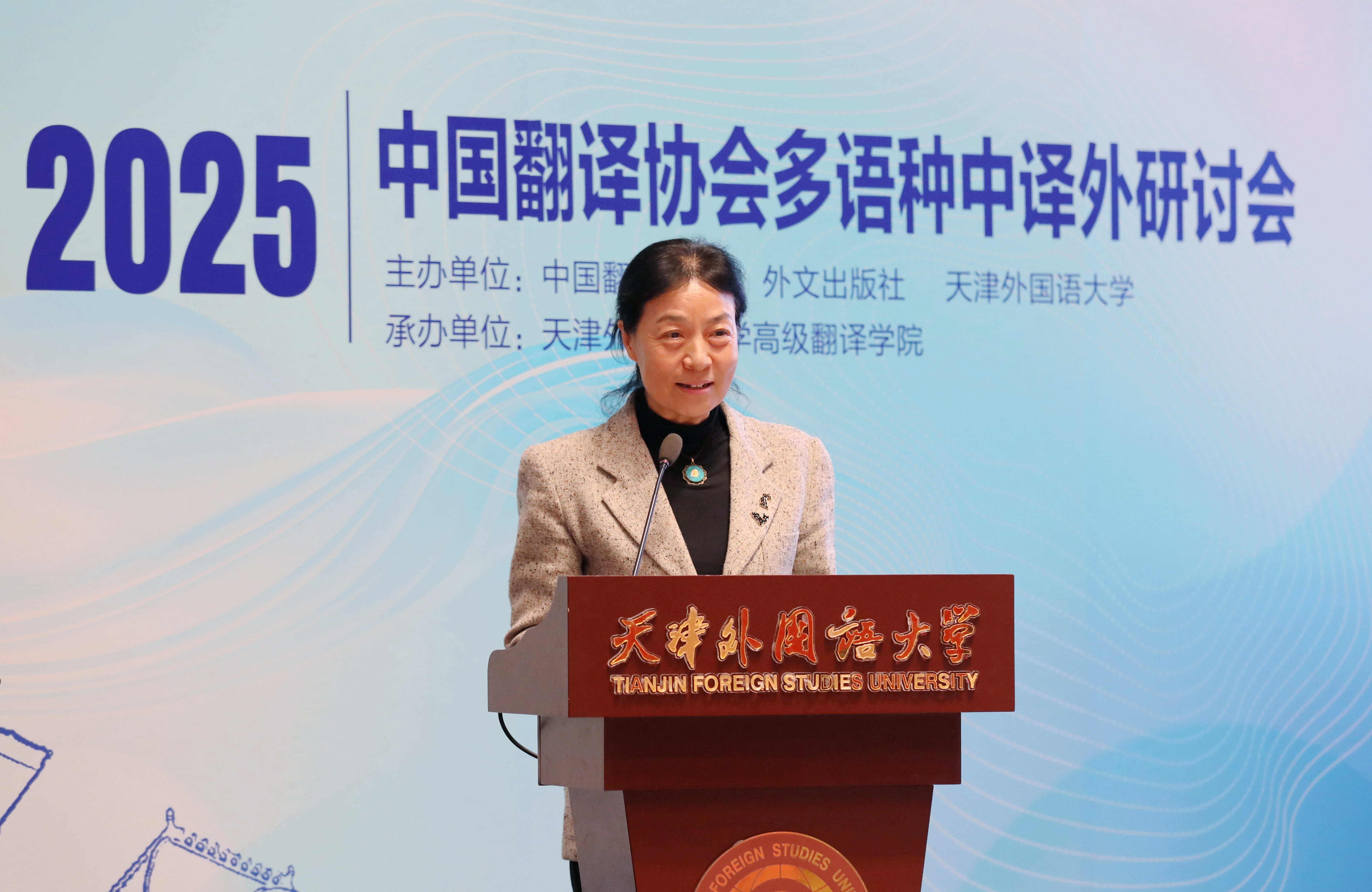 12月23日,由中国翻译协会、外文出版社、天津外国语大学主办,天津外国语大学高级翻译学院承办的中国翻译协会多语种研讨会在天津召开。中国外文局总编辑、中国翻译协会常务副会长兼秘书长高岸明,中国外文局副总编辑、当代中国与世界研究院院长李雅芳,天津外国语大学校长李迎迎,外文出版社总编辑许荣出席研讨会开幕式并致辞。天津外国语大学副校长朱鹏霄主持开幕式。