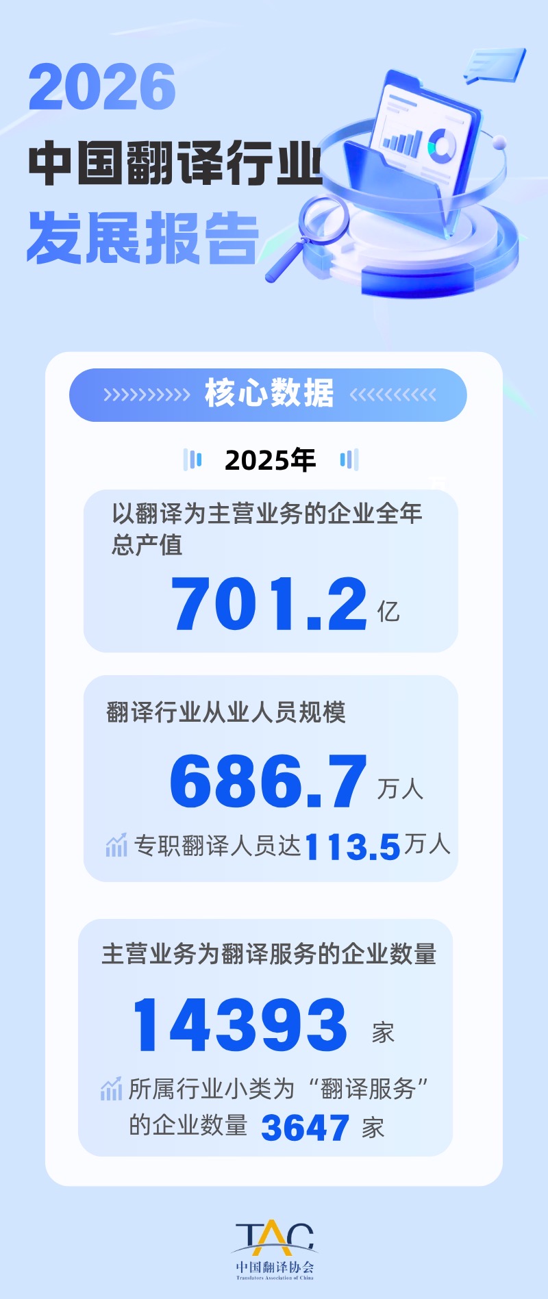 《2026中国翻译行业发展报告》和《2026全球翻译行业发展报告》的发布为公众了解和掌握中国及全球翻译行业最新发展态势及走向,推进翻译行业高质量发展提供前瞻性参考。